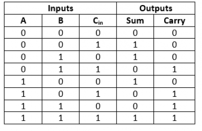 Aby go zbudować, zbudujemy half adder - który dodaje 2 bity i Full adder - który dodaje 3 bity.