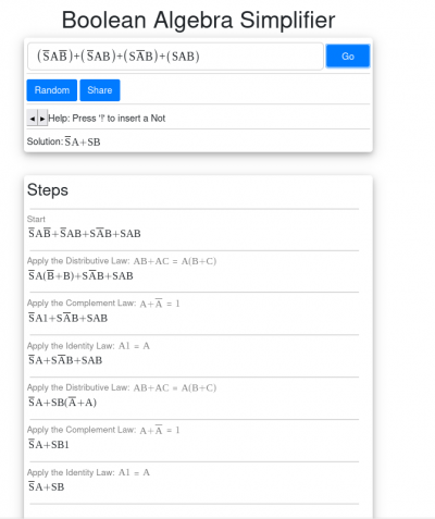 (NOT(s) AND A AND NOT(B)) or (NOT(S) AND A AND B) or (s AND NOT(a) AND B) or (s and a and b)