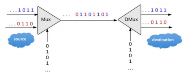 Wyobraź sobie sytuację gdzie mamy jeden “kabelek”, przez który chcą przejść dwie różne informację naraz. np osiem zer i jedynek z wejścia a, i 8 zer i jedynek z wejścia b. Możemy umówić się, że co sekunde zmienia się wartość s ( wyboru) w multiplekserze. Dzięki temu co sekundę na wyjściu będziemy mieć naprzemiennie wejście z a i z b. Używając przeciwieństwa Multipleksera - DeMultipleksera ( o nim też będzie mowa) , w którym wejście s też będzie zmieniać się co sekundę możemy odseparować te dwie informację “przesłane jedną linią” na dwa różne wyjścia.